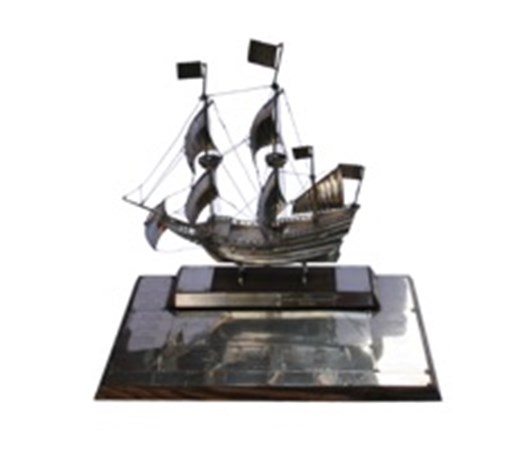 30 maart 2024 - Een kleine replica in zilver van het VOC schip de Halve Maan. Deze prijs is geschonken door Dr. ir. Th.P. Tromp en wordt thans gebruikt als wisselprijs behorende bij de Verbondsbezem competitie in IRC 1. Het schip van de heer Tromp droeg de naam Witte Raaf. Aangeboden op 19 september 1967.
